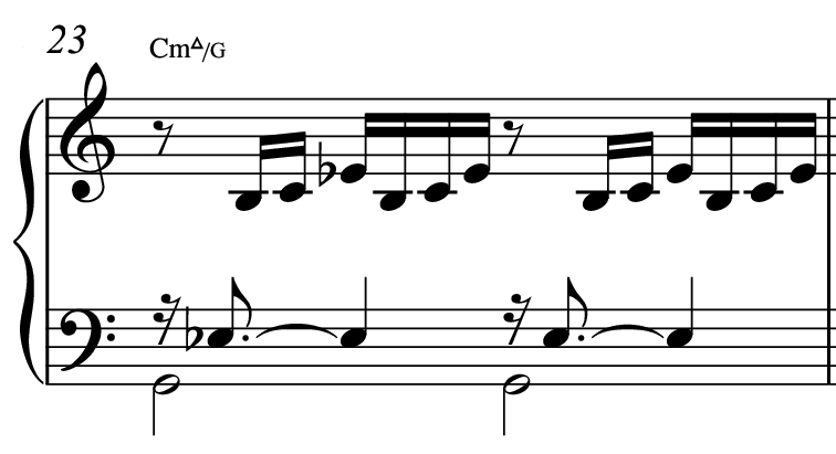 J.S. Bach / Charles Gounod Ave Maria Von Gounod auf das erste Präludium aus Bachs Wohltemperiertem Klavier komponiert. ![]() So klingt Gounods Melodie oder Gounods Melodie mit Basston ohne harmonische Begleitung. Hier die Noten: Seite 1 Seite 2 ![]() Kann man also zusammen mit dem Präludium spielen, mit einer Ausnahme: Takt 23 hat Gounod hinzugefügt. ![]() Um die Melodie des Ave Maria zu Bachs Präludium zu spielen, brauchen wir eine um diesen Takt erweiterte Version: Das erste Präludium 2.0 Dann passen die Stücke aufeinander. |