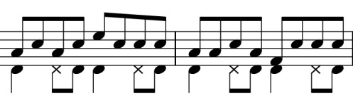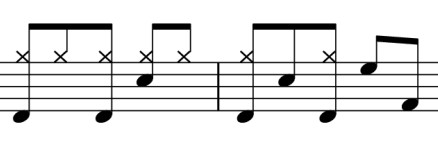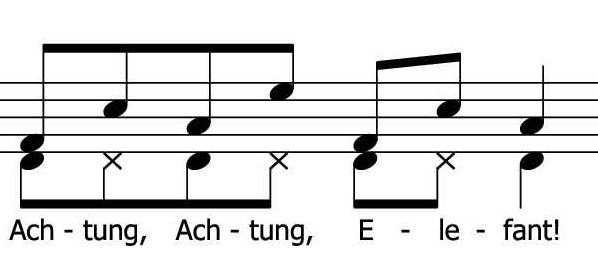 Erfindung während einer Stunde. Macht Spaß! Ich wechsel die Instrumente im vierten Takt und setzte ab und zu ein Becken auf die Eins, das reicht schon, um aus der Idee Musik zu machen. .